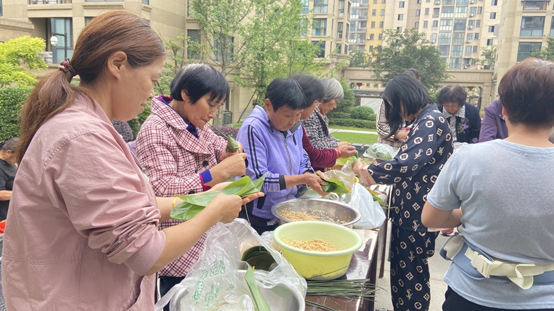各物業(yè)管理處精心挑選應(yīng)時(shí)應(yīng)景的食材,邀請業(yè)主一同包粽子。業(yè)主們圍坐閑聊,手上不停,起葉、勺料、包形、扎繩,一頓操作行云流水、一氣呵成,沒一會(huì)兒就包出了一只只精巧美味的粽子。現(xiàn)場歡聲笑語縈繞,粽香四溢。