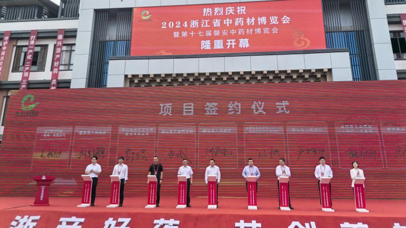 開幕式上,沈省文參加浙江省中藥全鏈條追溯體系管理辦法發布。曾躍芳代表浙農股份與磐安縣政府、省農科院簽訂浙產道地藥材優良種質培育及保護戰略合作協議,三方將在中藥材種質資源保護、優良品種選育、規范化種植等方面展開深入合作,共同推進浙江省中藥材產業的高質量發展。